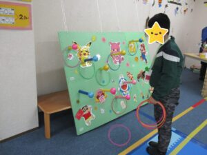 今回、輪投げは点数をつけて