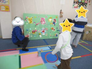 輪投げでは、自分たちで